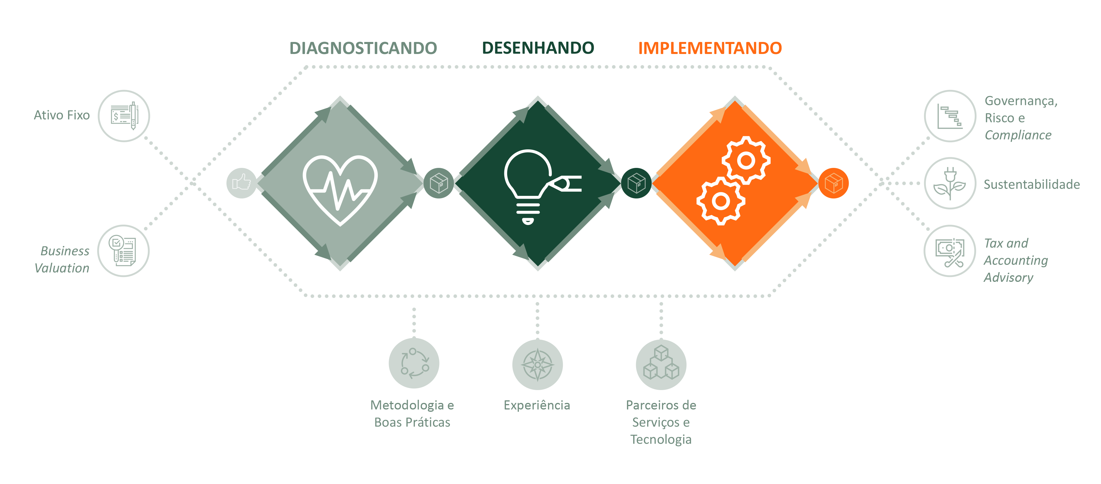 - Diagnóstico de Desempenho e Maturidade de Gestão, de Cultura Organizacional e Econômico-Financeira.
